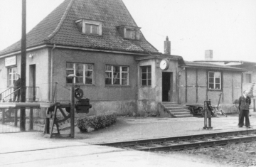 Dieser Ex-Schuppen (A 22) wurde von der Familie Bohnenkamp in den 1930er Jahren zu einem großen Wohnhaus umgebaut. Später folgen links und rechts Anbauten. Bis dann vor einem kompletten Neubau dieser Gebäudekomplex abgebrochen wurde.Wenn Sie mehr wissen wollen, hier geht es weiter!![]() Der 30-Meter-Schuppen D 46 stand nur noch als Gerippe im Jahr 1986 (Datum des Fotos). Kurze Zeit später war auch er nicht mehr vorhanden. Der ehemalige Muntionsschuppen (A 6) wurde unterschiedlich genutzt. Auch als polnische Kirche in den Jahren 1945-1950 und später wurde das Gebäude industriell genutzt. Der Abriss und ein kompletter Neubau (Aldi) erfolgten in den 1980 Jahren. >