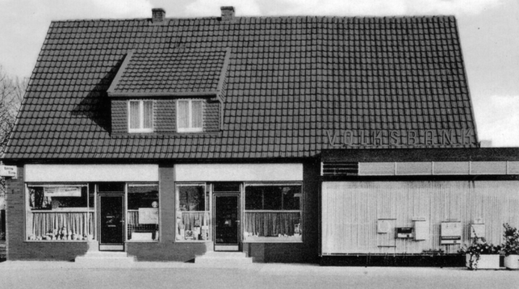 Toline und Karl Fischer verkauften Kolonialwaren, und als sie mehr Platz dafür haben mussten, bauten sie sich 1934 ein Flachdachgebäude an der Bahnhofstraße. Displaced Persons nahmen ab 1945 das Haus in Anspruch, später folgten ein Lebensmittelladem und eine Gastronomie. Und der Abbruch? Anfang der 1980er Jahre?