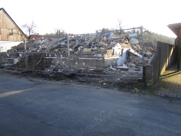 Die Leichenhalle am Kirchweg wurde am 13. November 1949 eingeweiht. Viel Bürgerengagement trugen zum Bau bei. Durch den Bau einer neuen Totenhalle am Friedhof war die Zeit für einen Abriss gekommen.
