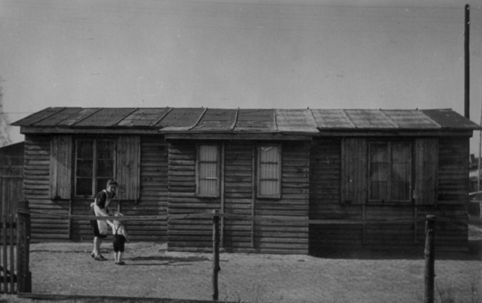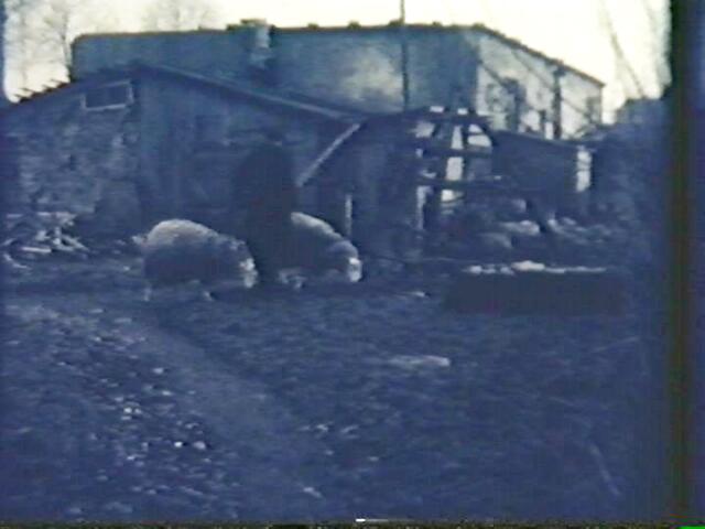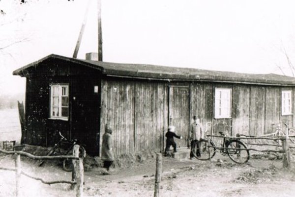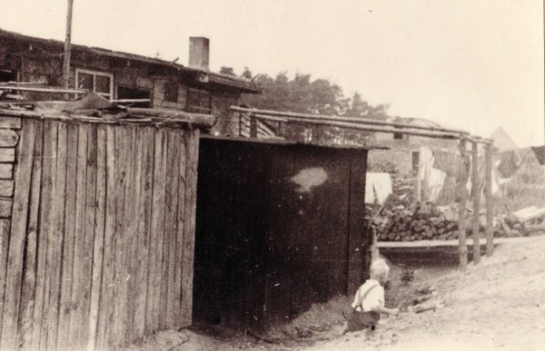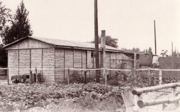 Der linke Schuppen war B 26. Seine Breite: 30 Meter. Die Familie Krotofil kaufte einen Teil des Schuppens und wohnte darin. Dieser Teil (Foto) wurde jedoch Mitte der 1960er Jahre abgerissen. Die weiteren Schuppen standen ebenfalls im Block B. Welche Nummern sie hatten, ist nicht mehr bekannt. Die etwas schlechtere Bildqualität hängt damit zusammen, dass sie einem Schmalfilm aus Ende der 1950/1960er Jahren entnommen wurden.
