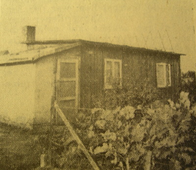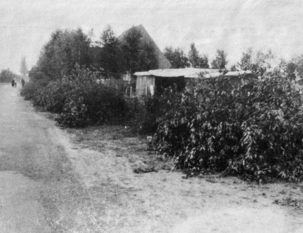 ![]() Hier ist der Beweis: Die Schuppen hatten (allerdings nicht alle) an beiden Seitenwänden jeweils die Nummer stehen! Hier der 30-Meter-Schuppen in A mit der Nummer 46. Der Schupppen wurde zwar gekauft, war aber nie bewohnt. Der Abbruch erfolgte Anfang der 1950er Jahre