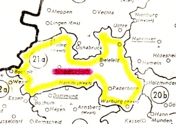 Nordrhein-Westfalen war unterteilt in 21a (u.a. Münster) und 21b