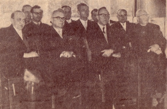 Übergabe des neuen Postgebäudes an die ReckenfelderAuf dem Foto sind zu sehen vordere Reihe v.l.: Fabian (Bürgermeister), Quante (Stadtverwaltung Greven), Pastor Esch, Pastor Müller hintere Reihe v.l.: Nitzsche, Jansen (Personalratsvorsitzender Greven), Sandbaumhüter, Fricke (Amtsvorsteher Postamt Greven). |