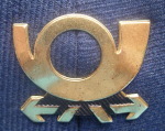 Abzeichen auf der Uniform eines Postzustellers.