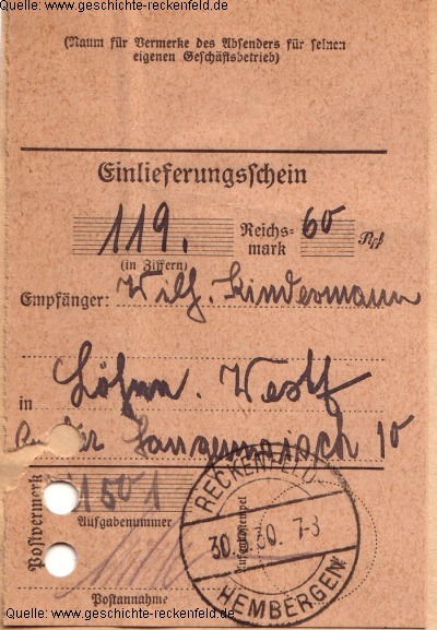 Dieser Stempel hat Seltenheitswert: Reckenfeld - Hembergen aus dem Jahr 1930