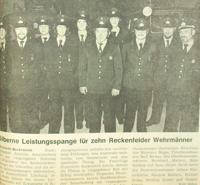 Willi Marschewski (Mitte) wird für seine gute Arbeit in der Reckenfelder Feuerwehr besonders gewürdigt.