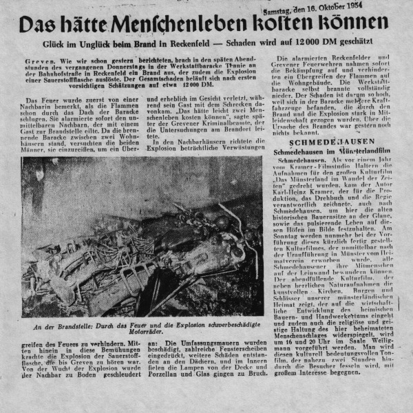 Eine Zeitung berichete über diesen großen Brand an der Bahnhofstraße