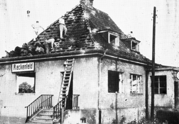 Pfarrer Müller schrieb dazu in seiner Chronik: "Den großen Bombenangriff erlebten wir am 16. Februar 1945 in den Mittagsstunden, wo ca. 300 Bomben beiderseitig des Bahnkörpers fielen, die aber zum größten Teil ins freie Feld fielen. In Reckenfeld selbst wurden nur die Häuser der Familien Brüggemann, Kock, Utmann beschädigt (Dach- und Fensterschaden), während der Bahnhof zur Hälfte zerstört wurde - das einzige militärische Ziel. In der angrenzenden Bauerschaft Herbern mußte die Familie Bockel-Rickermann den größten Teil des Wohnhauses einbüßen, während das Haus Gerling total zerstört wurde und einige andere Häuser, wie Glanemann und Knaup, die Dachschäden hatten."