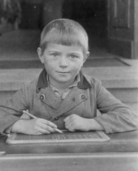 "Viele der Kinder hatten Schiefertafeln, einige haben auf Zeitungsrändern ihre Hausaufgaben gemacht (Höfling aus D, die hatten viele Kinder und kein Geld)".