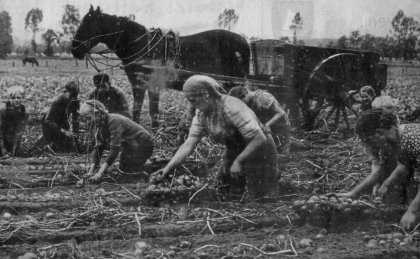 "Welch eine Entwicklung bis heute! Im Herbst nach dem Schulunterricht halfen wir Schüler, nur wer Lust hatte, bei den Bauern bei der Kartoffelernte, auch Rüben wurden gepflanzt. Zur Belohnung gab es etwas Geld und ein schmackhaftes Butterbrot. Die Hausaufgaben waren an diesem Nachmittag vom Lehrer gestrichen."