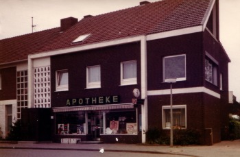 Der Schwiegervater von Günther Loges (Direktor bei einer Bank in Herne) hatte in einer Zeitung die Anzeige von Heinrich Brinkmeyer - Besitzer vom Deutschen Haus und dieses Ladenlokals in Reckenfeld -, gelesen: "[...] in Reckenfeld wird für ein Ladenlokal ein Apotheker gesucht."