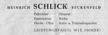 Bereits in jungen Jahren machte sich Heinrich Schlick in Dortmund mit einem Reparaturbetrieb für Autos und Motorräder selbständig, später kam der Eigenbau von Motorrädern hinzu. In den Jahren 1931/32 erwarb Heinrich Schlick in der neuen Siedlung Reckenfeld ein Grundstück, auf dem er eine Werkstatt errichtete. Die Firma handelte mit Fahrrädern, Motorrädern, Haushaltswaren und Radiogeräten. Im Jahre 1945 wurden die Betriebsgebäude von der UNRRA beschlagnahmt, so daß man im Jahre 1949 einen neuen Anfang machen mußte.