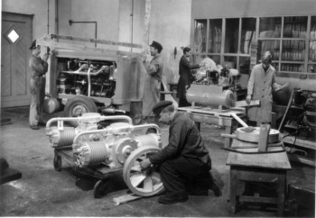Ab 1949 wurden Kompressoren mit Antriebsmotoren bis zu 30 KW sowie Strahlanlagen hergestellt. Die Firma beschickte die ersten internationalen Fachmessen in Hannover und Frankfurt und gewann so rasch einen weiten Kundenkreis (u.a. Hoesch und Gutehoffnungshütte). Bald folgten die ersten Auslandsaufträge (Türkei, Kuweit, Schweiz), auch mit Bau-Dieselkompressoranlagen bis zu 12 m3/Min.