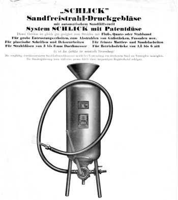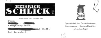 In den 1960er Jahren spezialisierte sich die Firma "Schlick" immer mehr auf Strahlanlagen. Im Jahre 1968 vergab die Firma "H. Schlick" die Lizenz zur Herstellung von Schlick-Sandstrahlanlagen nach Frankreich. Durch die Dimensionierung der neuen Maschinen wurden die Produktionsstätten in Reckenfeld zu klein, so daß man sich im Jahre 1969 entschloss, in Metelen ein weiteres Werk zu errichten. Bereits im Jahre 1970 wurden in Metelen rund ?0 Mitarbeiter beschäftigt. Schon vier Jahre später mußten in Metelen Erweiterungsgebäude errichtet werden. Der Arbeitsschwerpunkt lag nun auf der Herstellung von Strahlanlagen und Sondermaschinen für die Oberflächentechnik.