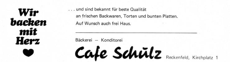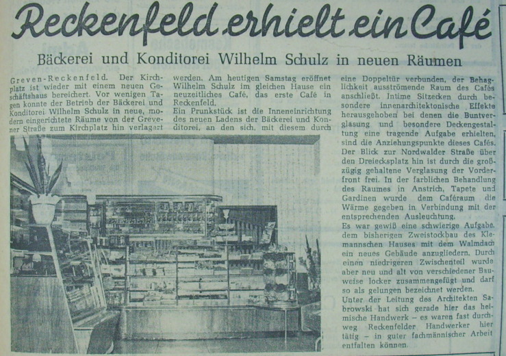 Schulz kam aus dem Ruhrgebiet. Dort liefen die Geschäfte nicht so gut. Deshalb kam er mit seiner Frau und den Töchtern nach Reckenfeld. Das war zu Beginn der 1950er Jahre, noch vor dem Jahr 1953.